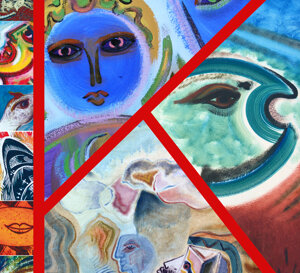1997 - Bari (Italia) - "Le Porte del Mediterraneo" in occasione delle XIII Olimpiadi mediterranee. ( Commissionato dal Municipio di Bari e l'Ambasciata Greca a Roma .Dipinto ad olio su ferro, m. 4x3,25. Monumento nazionale.